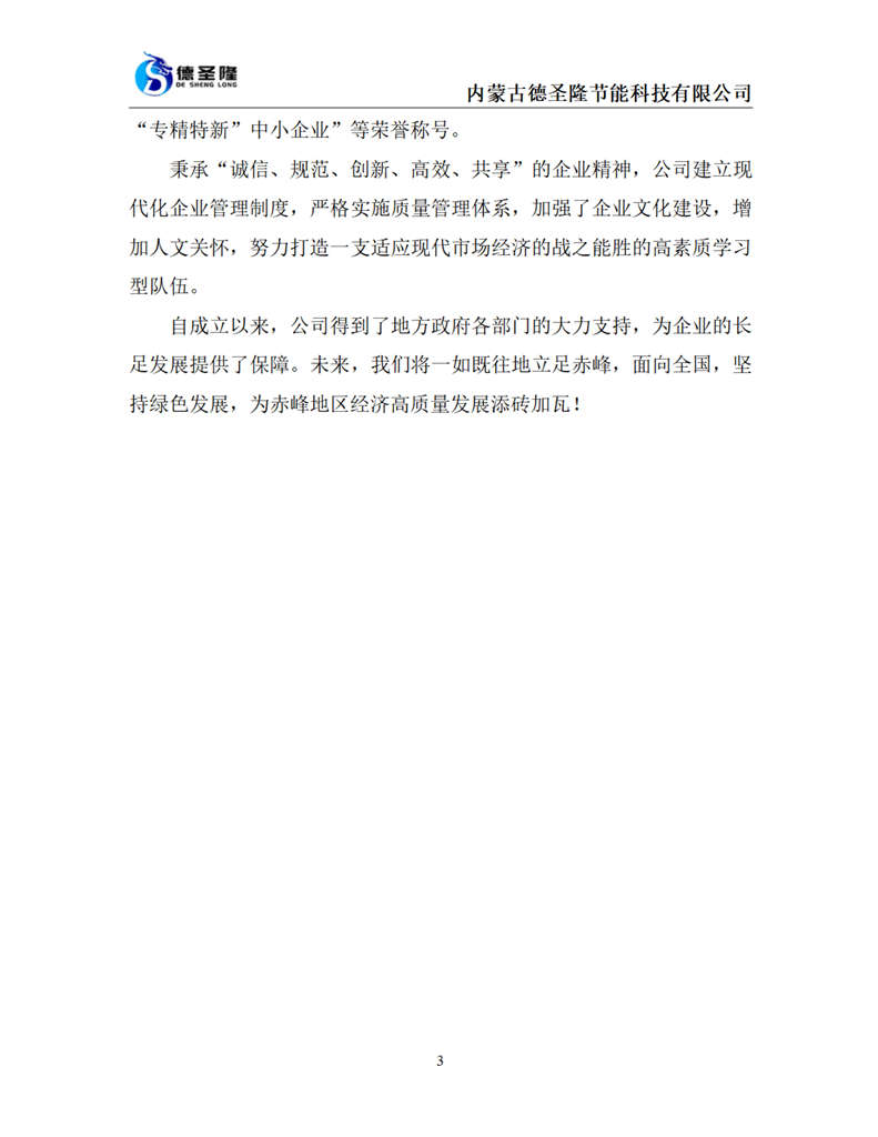 內(nèi)蒙古德圣隆節(jié)能科技有限公司始終踐行“誠(chéng)信立業(yè)、科技興企、質(zhì)量為本、安全為天”的經(jīng)營(yíng)理念,堅(jiān)持“以客戶為中心,以?shī)^斗者為本”的宗旨,以“讓天更藍(lán)、水更綠,居住更安全,生活更溫暖”為使命,努力實(shí)現(xiàn)“打造百年品牌。